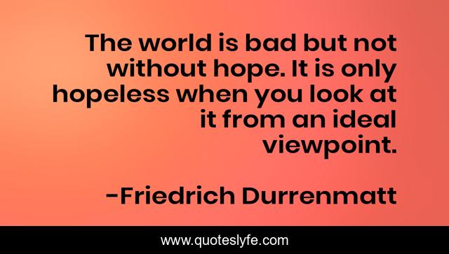 This page presents the quote "The world is bad but not without hope. It is only hopeless when you look at it from an ideal viewpoint.". Author of this quote is Friedrich Durrenmatt. This quote is about world, look,.