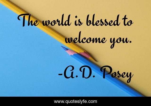 "A.D. Posey Quotes." Quoteslyfe.com, 2025. Fri. 05 Dec. 2025. <https://www.quoteslyfe.com/quote/The-world-is-blessed-to-welcome-you-89579>.