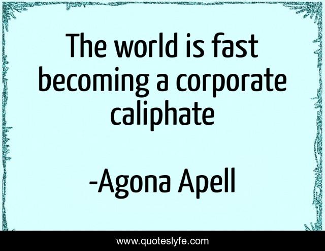 This page presents the quote "The world is fast becoming a corporate caliphate". Author of this quote is Agona Apell. This quote is about caliphate, power,.