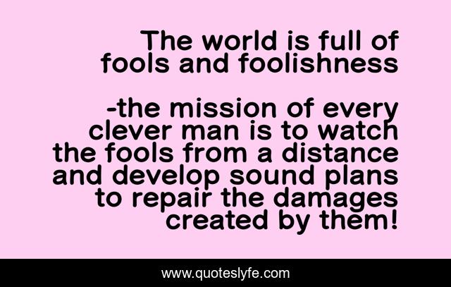 This page presents the quote "The world is full of fools and foolishness". Author of this quote is the mission of every clever man is to watch the fools from a distance and develop sound plans to repair the damages created by them!. .