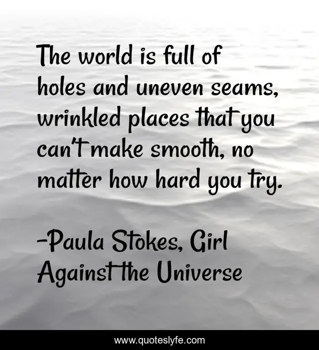 This page presents the quote "The world is full of holes and uneven seams, wrinkled places that you can’t make smooth, no matter how hard you try.". Author of this quote is Paula Stokes, Girl Against the Universe. This quote is about loss, life, death, world,.