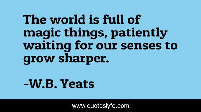 This page presents the quote "The world is full of magic things, patiently waiting for our senses to grow sharper.". Author of this quote is W.B. Yeats. This quote is about awe, perception, magic, wonder,.