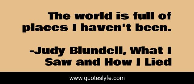 This page presents the quote "The world is full of places I haven't been.". Author of this quote is Judy Blundell, What I Saw and How I Lied. This quote is about judy-blundell, travel, what-i-saw-and-how-i-lied, mgg,.