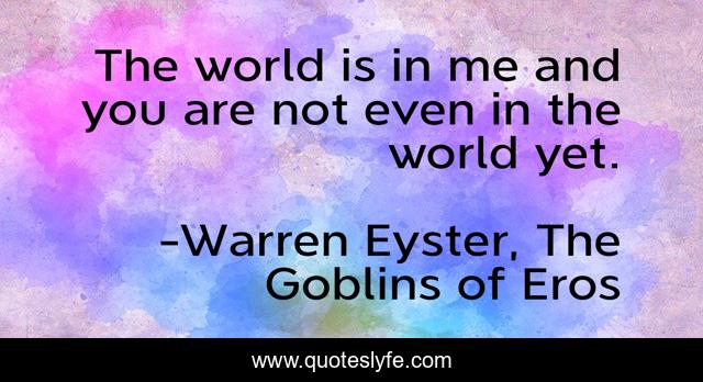 "Warren Eyster, The Goblins of Eros Quotes." Quoteslyfe.com, 2025. Sat. 06 Dec. 2025. <https://www.quoteslyfe.com/quote/The-world-is-in-me-and-you-158750>.