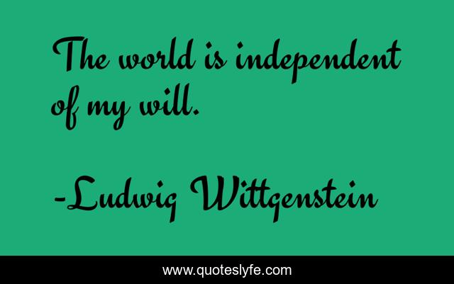 This page presents the quote "The world is independent of my will.". Author of this quote is Ludwig Wittgenstein. This quote is about world, independent,.