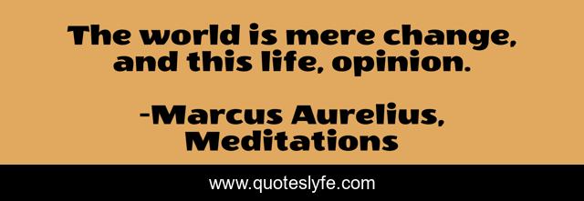 This page presents the quote "The world is mere change, and this life, opinion.". Author of this quote is Marcus Aurelius, Meditations. This quote is about spirituality, roman, philosophy-of-life, psychology,.