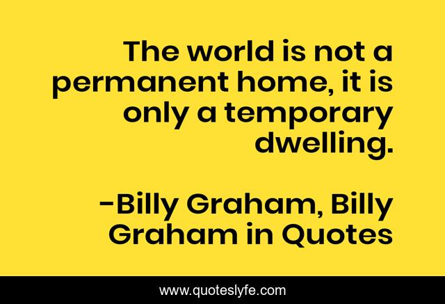 "Billy Graham, Billy Graham in Quotes Quotes." Quoteslyfe.com, 2025. Sat. 06 Dec. 2025. <https://www.quoteslyfe.com/quote/The-world-is-not-a-permanent-home-152384>.