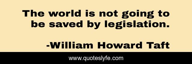 This page presents the quote "The world is not going to be saved by legislation.". Author of this quote is William Howard Taft. This quote is about world, going, legislation,.