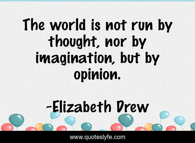 This page presents the quote "The world is not run by thought, nor by imagination, but by opinion.". Author of this quote is Elizabeth Drew. This quote is about thought, world, opinion,.