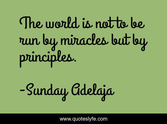This page presents the quote "The world is not to be run by miracles but by principles.". Author of this quote is Sunday Adelaja. This quote is about miracles, world, principle, miracle, principles,.