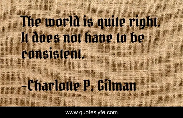 This page presents the quote "The world is quite right. It does not have to be consistent.". Author of this quote is Charlotte P. Gilman. This quote is about positive, confidence, creating, change,.