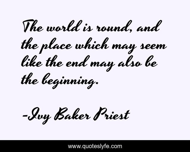 This page presents the quote "The world is round, and the place which may seem like the end may also be the beginning.". Author of this quote is Ivy Baker Priest. This quote is about struggle-of-life, achievement, beginnings,.