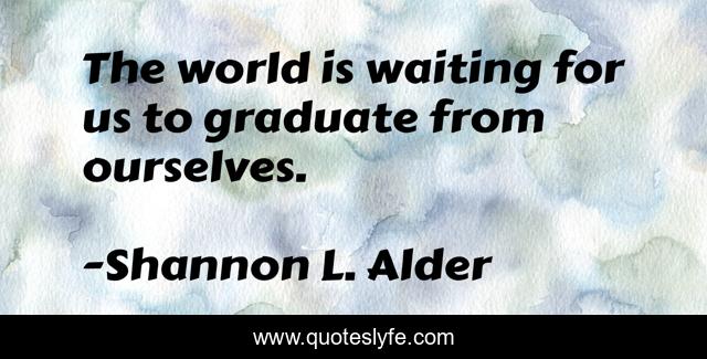 This page presents the quote "The world is waiting for us to graduate from ourselves.". Author of this quote is Shannon L. Alder. This quote is about service, activism, graduation, graduation-speech, world, inspiration,.