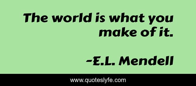 This page presents the quote "The world is what you make of it.". Author of this quote is E.L. Mendell. This quote is about world, encouragement, inspiration,.