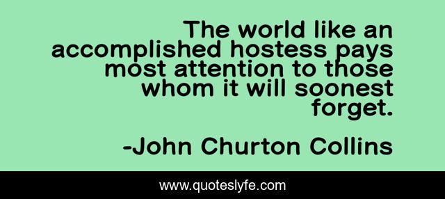 This page presents the quote "The world like an accomplished hostess pays most attention to those whom it will soonest forget.". Author of this quote is John Churton Collins. This quote is about celebrities, fame,.