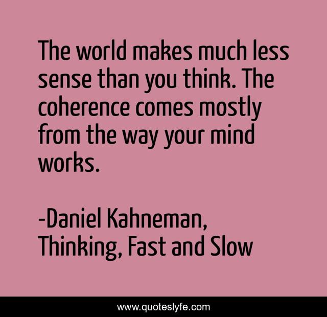 This page presents the quote "The world makes much less sense than you think. The coherence comes mostly from the way your mind works.". Author of this quote is Daniel Kahneman, Thinking, Fast and Slow. This quote is about mind, psychology,.