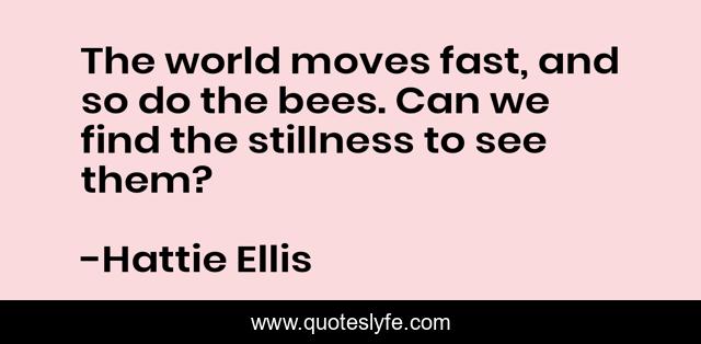 This page presents the quote "The world moves fast, and so do the bees. Can we find the stillness to see them?". Author of this quote is Hattie Ellis. .
