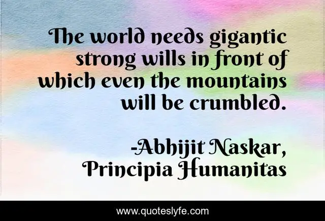 "Abhijit Naskar, Principia Humanitas Quotes." Quoteslyfe.com, 2025. Mon. 08 Dec. 2025. <https://www.quoteslyfe.com/quote/The-world-needs-gigantic-strong-wills-in-36808>.