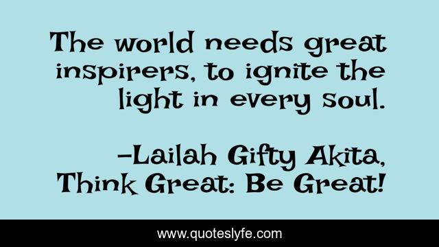 "Lailah Gifty Akita, Think Great: Be Great! Quotes." Quoteslyfe.com, 2025. Mon. 08 Dec. 2025. <https://www.quoteslyfe.com/quote/The-world-needs-great-inspirers-to-ignite-92753>.