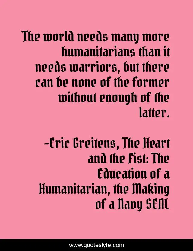 "Eric Greitens, The Heart and the Fist: The Education of a Humanitarian, the Making of a Navy SEAL Quotes." Quoteslyfe.com, 2025. Mon. 08 Dec. 2025. <https://www.quoteslyfe.com/quote/The-world-needs-many-more-humanitarians-than-71715>.