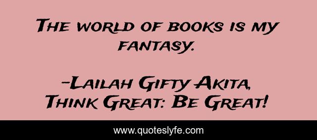 "Lailah Gifty Akita, Think Great: Be Great! Quotes." Quoteslyfe.com, 2025. Mon. 08 Dec. 2025. <https://www.quoteslyfe.com/quote/The-world-of-books-is-my-fantasy-82834>.