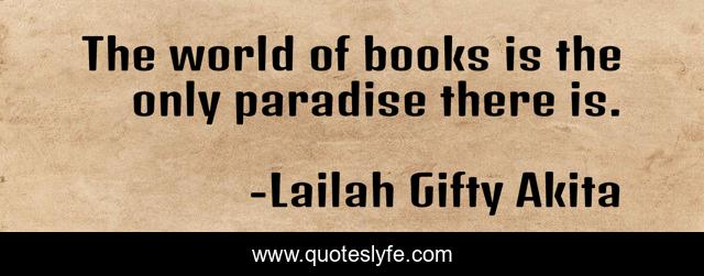 This page presents the quote "The world of books is the only paradise there is.". Author of this quote is Lailah Gifty Akita. This quote is about read, self-study, books, education, library,.