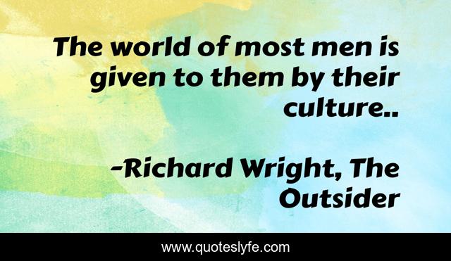 This page presents the quote "The world of most men is given to them by their culture..". Author of this quote is Richard Wright, The Outsider. This quote is about culture, man, world,.