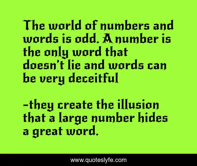 "they create the illusion that a large number hides a great word. Quotes." Quoteslyfe.com, 2025. Fri. 05 Dec. 2025. <https://www.quoteslyfe.com/quote/The-world-of-numbers-and-words-is-111853>.