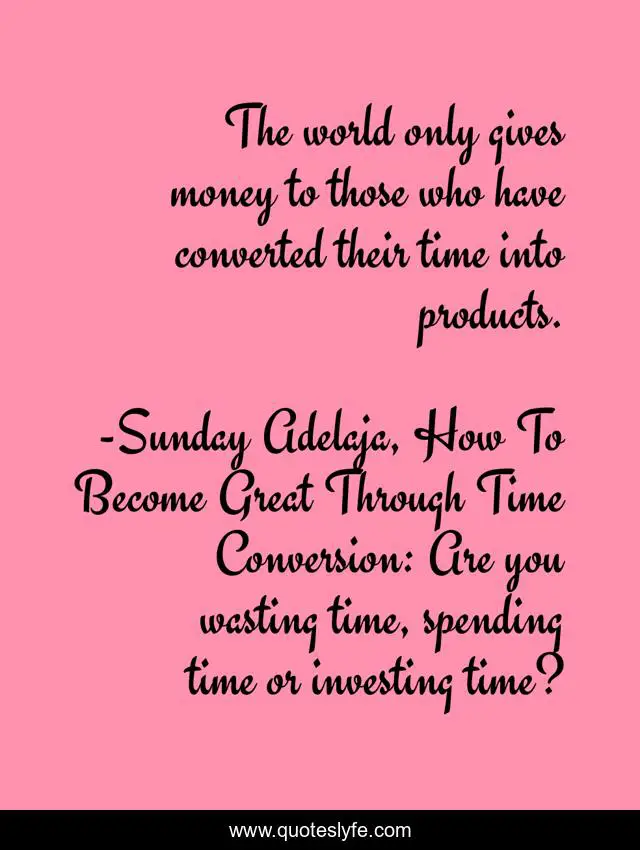 "Sunday Adelaja, How To Become Great Through Time Conversion: Are you wasting time, spending time or investing time? Quotes." Quoteslyfe.com, 2025. Sat. 06 Dec. 2025. <https://www.quoteslyfe.com/quote/The-world-only-gives-money-to-those-38949>.