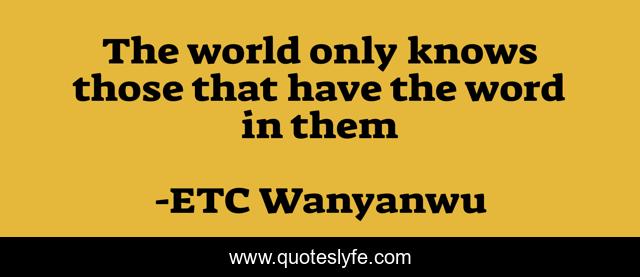"ETC Wanyanwu Quotes." Quoteslyfe.com, 2025. Fri. 05 Dec. 2025. <https://www.quoteslyfe.com/quote/The-world-only-knows-those-that-have-89401>.