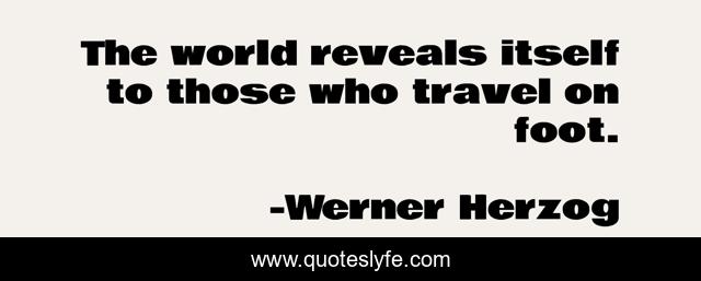 This page presents the quote "The world reveals itself to those who travel on foot.". Author of this quote is Werner Herzog. This quote is about foot, world, itself,.