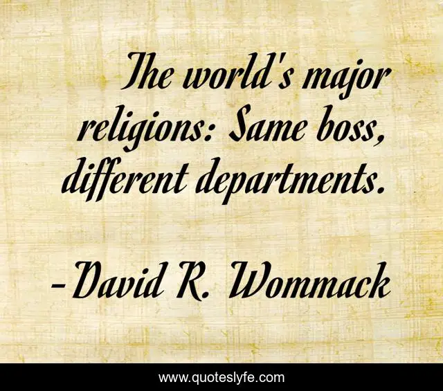 This page presents the quote "The world's major religions: Same boss, different departments.". Author of this quote is David R. Wommack. .