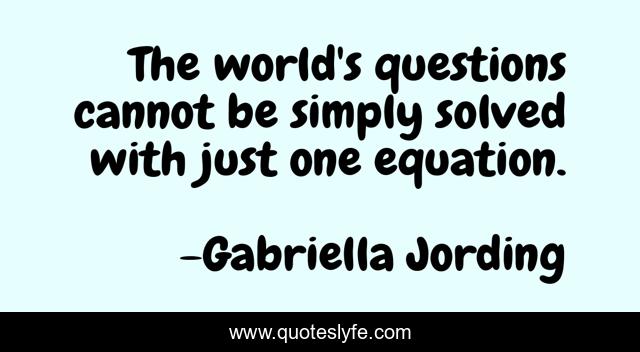 This page presents the quote "The world's questions cannot be simply solved with just one equation.". Author of this quote is Gabriella Jording. This quote is about solved, equation, one, questions, world,.