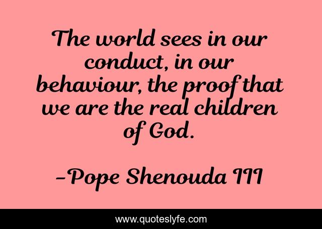 This page presents the quote "The world sees in our conduct, in our behaviour, the proof that we are the real children of God.". Author of this quote is Pope Shenouda III. This quote is about real, world, children,.