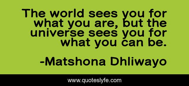 The world sees you for what you are, but the universe sees you for what you can be.