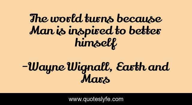 This page presents the quote "The world turns because Man is inspired to better himself". Author of this quote is Wayne Wignall, Earth and Mars. .