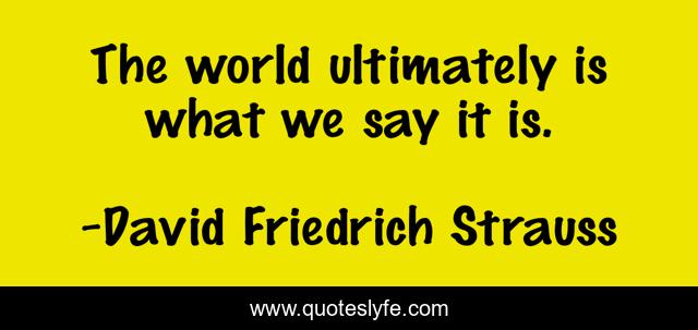 This page presents the quote "The world ultimately is what we say it is.". Author of this quote is David Friedrich Strauss. This quote is about real, subjective-experience, universe, authority, reality, experience, world, subjective-reality,.