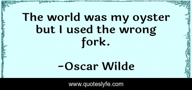 This page presents the quote "The world was my oyster but I used the wrong fork.". Author of this quote is Oscar Wilde. This quote is about wit, manners,.