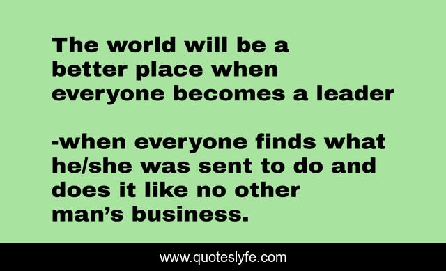 This page presents the quote "The world will be a better place when everyone becomes a leader". Author of this quote is when everyone finds what he/she was sent to do and does it like no other man’s business.. This quote is about israelmore ayivor, leaders' watchwords,.