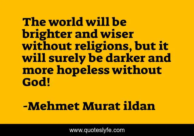 This page presents the quote "The world will be brighter and wiser without religions, but it will surely be darker and more hopeless without God!". Author of this quote is Mehmet Murat ildan. .