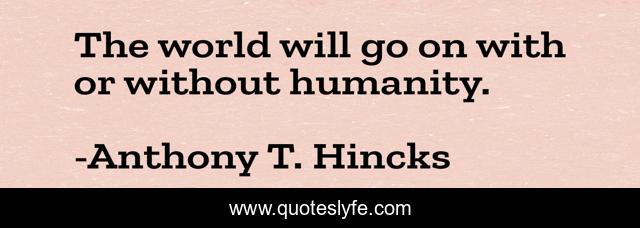 This page presents the quote "The world will go on with or without humanity.". Author of this quote is Anthony T. Hincks. This quote is about life, philosophy, religion, without, world, go-on, philosophy-of-life, with, humanity,.