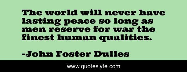 This page presents the quote "The world will never have lasting peace so long as men reserve for war the finest human qualities.". Author of this quote is John Foster Dulles. .