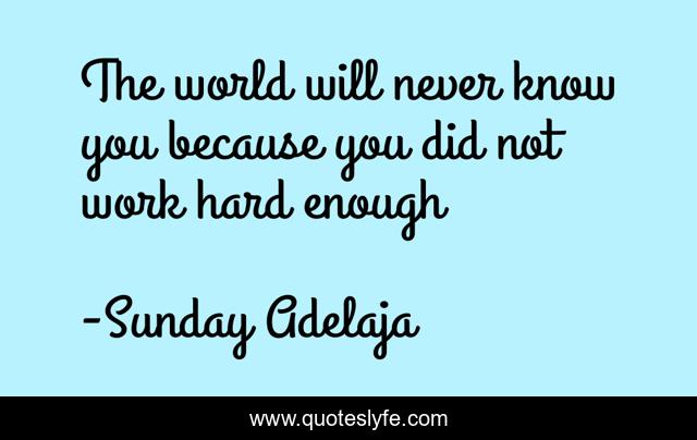 This page presents the quote "The world will never know you because you did not work hard enough". Author of this quote is Sunday Adelaja. This quote is about life, work-hard, hard-work, work, calling, famous, purpose, truth, greatness,.