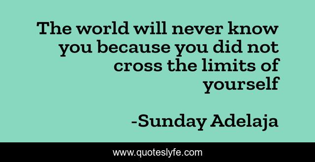 This page presents the quote "The world will never know you because you did not cross the limits of yourself". Author of this quote is Sunday Adelaja. This quote is about famous, self, history, limits, world,.