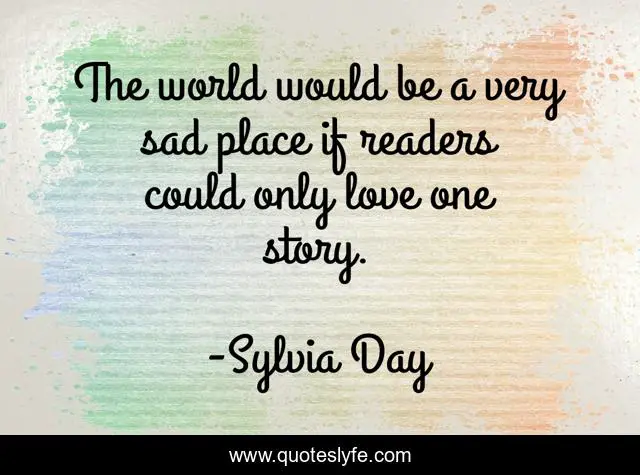 This page presents the quote "The world would be a very sad place if readers could only love one story.". Author of this quote is Sylvia Day. This quote is about world, story, love, affection,.