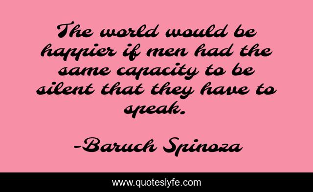 This page presents the quote "The world would be happier if men had the same capacity to be silent that they have to speak.". Author of this quote is Baruch Spinoza. This quote is about world, silent, speak,.