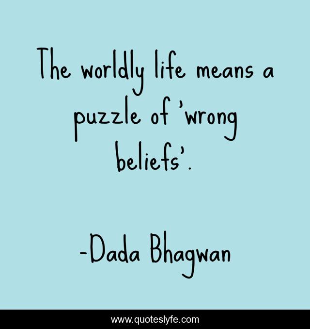 This page presents the quote "The worldly life means a puzzle of ‘wrong beliefs’.". Author of this quote is Dada Bhagwan. This quote is about world, life, puzzle, spiritual, belief,.