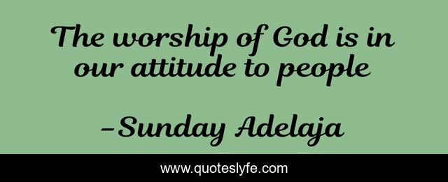 This page presents the quote "The worship of God is in our attitude to people". Author of this quote is Sunday Adelaja. This quote is about kingdom, life, love, destiny, serving-god, people, money, god, work,.