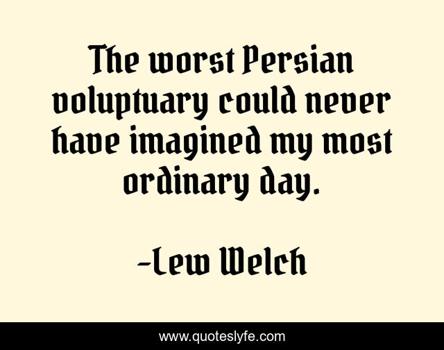 This page presents the quote "The worst Persian voluptuary could never have imagined my most ordinary day.". Author of this quote is Lew Welch. .