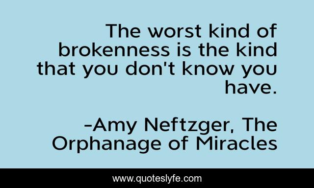 "Amy Neftzger, The Orphanage of Miracles Quotes." Quoteslyfe.com, 2025. Sat. 06 Dec. 2025. <https://www.quoteslyfe.com/quote/The-worst-kind-of-brokenness-is-the-148284>.